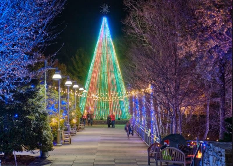 Winter Lights is a spectacular open-air walk-through light show made from over one million lights! Located at the North Carolina Arboretum in Asheville, North Carolina, this year's event features favorites like the famously tall 50-foot lighted tree and the Quilt Garden, along with enchanting new details designed to delight and surprise.