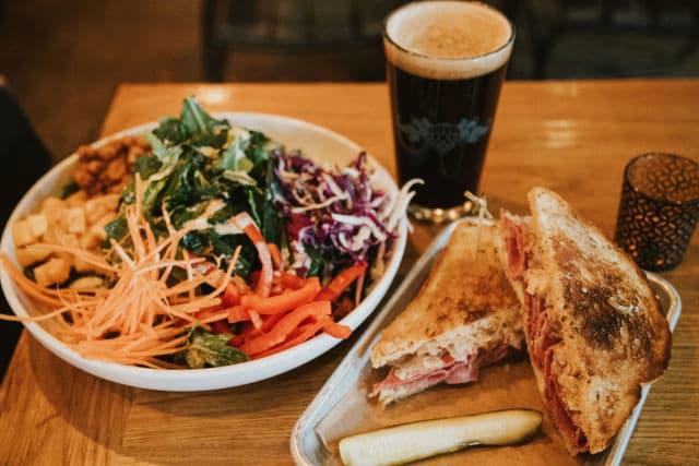 The upstairs portion of the historic building hosts a full restaurant featuring elevated pub gastronomy, 28 of our beer offerings, wine, classic as well as creative cocktails. Complete with a dog friendly patio and outdoor dining at street level guests are sure to find the brewery experience suited to them.