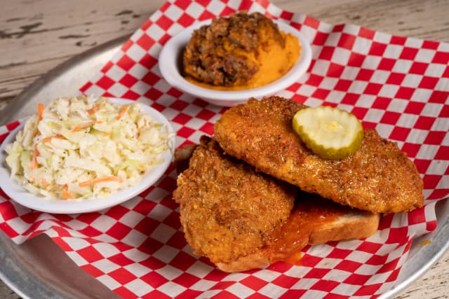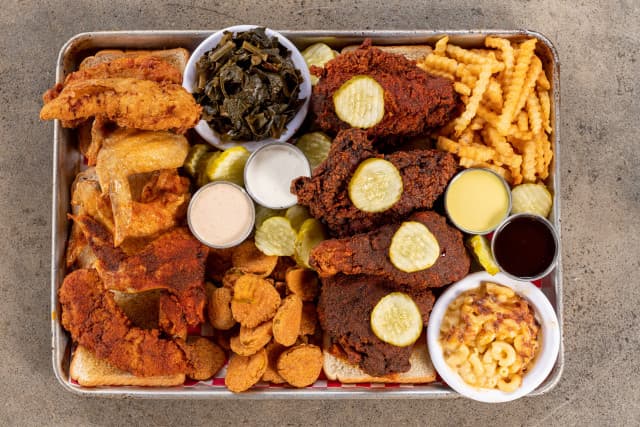 At Rocky's Hot Chicken Shack, we pay homage to "Nashville Style" hot chicken and southern soul food. We prepare our unique fried chicken to order and it all starts as "Plain."
