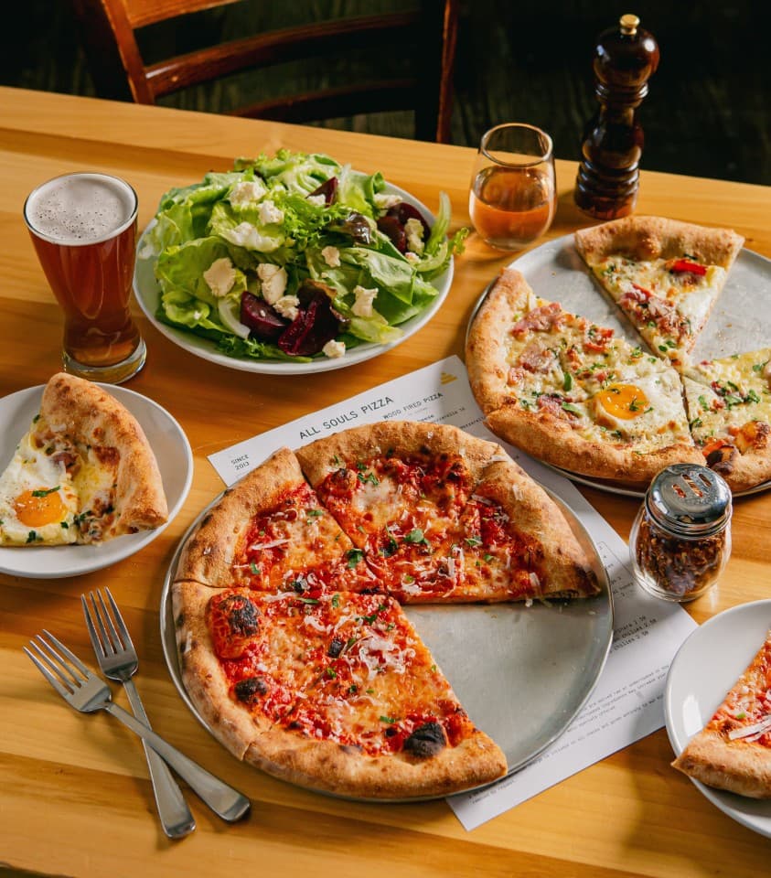 - All Souls Pizza is a seasonally inspired, wood fired pizzeria in Asheville’s River Arts District offering daily specials, appetizers, salads and soft serve ice cream alongside a reliable selection of quality wine and beer. We welcome diners of all ages to enjoy our large patio, kitchen garden and lawn that features ample outdoor seating with room to roam and play. Plentiful and cozy indoor seating is also available in our recently remodeled dining room.