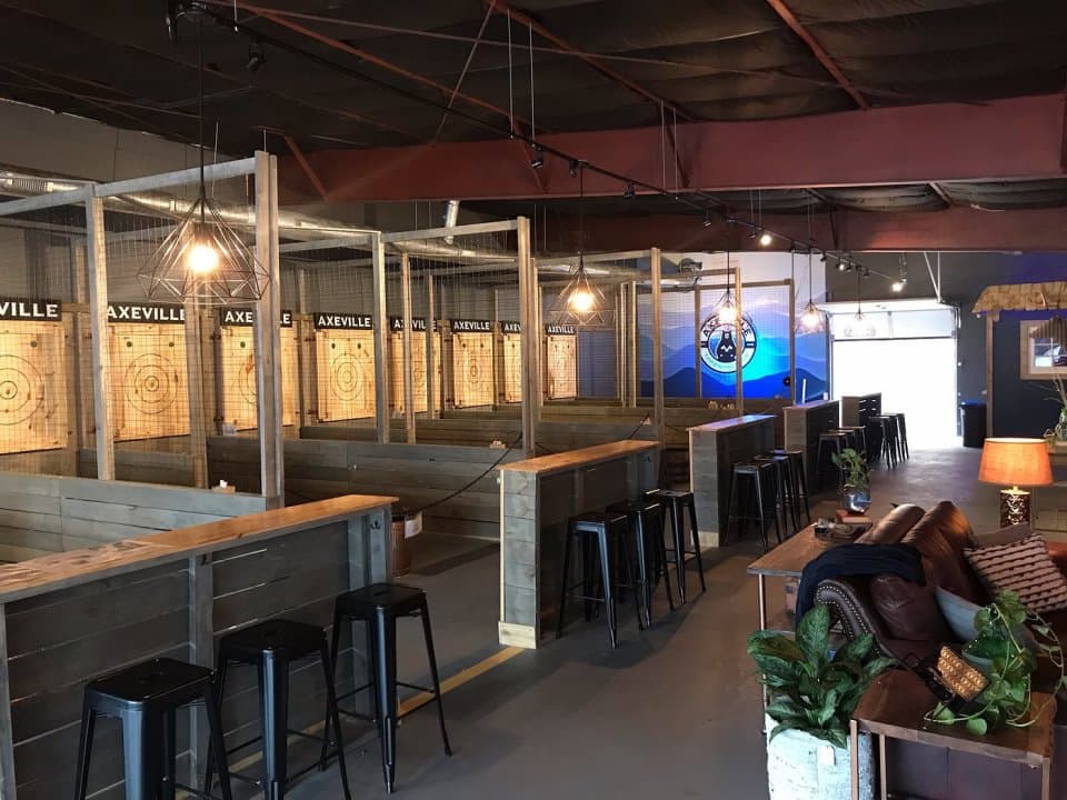 Axeville is the first axe throwing club in Asheville and is a local favorite with 5 star reviews on Google, TripAdvisor, Yelp and FB. Opened in 2019, our club is designed to allow our guests to safely throw axes at targets while enjoying local beer, cider and wine selections in our modern and cozy space. Complete with 10 targets (4 traditional and 6 digital), 3 cozy lounges with fireplaces, a large outdoor area with a fire pit and corn hole, multiple games and plenty of room for groups up to 60, Axeville is perfect for your next date night or outing with friends, family and coworkers.