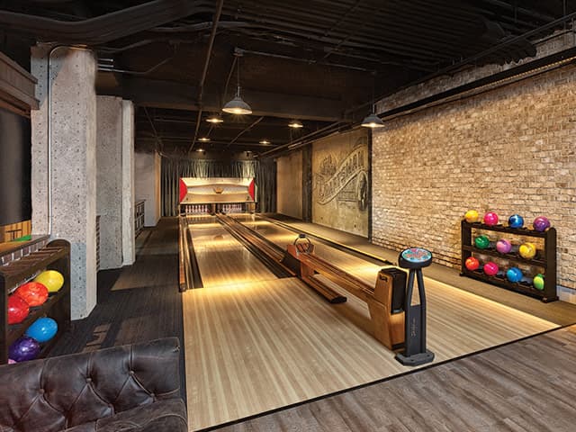- The Draftsman Bar & Lounge is located in the heart of downtown on the lower level of The Restoration Hotel Asheville and specializes in craft cocktails and good times. Come enjoy a variety of activities from classic arcade games, pinball, skeeball, live music, and even a bowling alley. All games, except bowling, are free while enjoying the drinks or full food menu available at The Draftsman. The Draftsman is also available for private events.