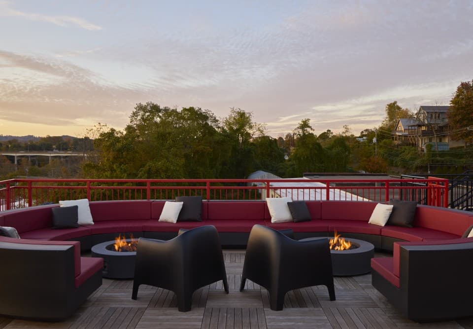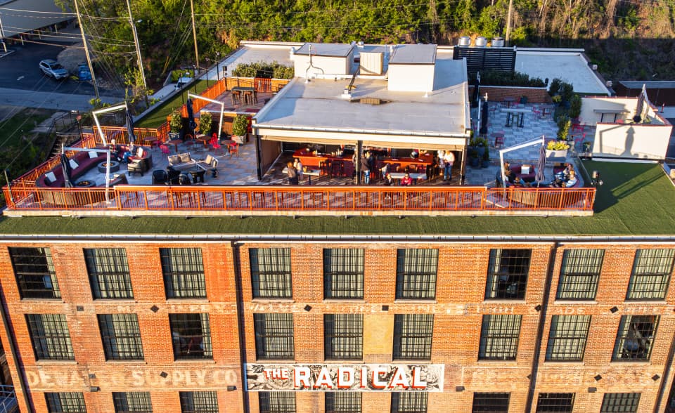 The Roof is a 125-person capacity rooftop bar overlooking the French Broad River and Asheville’s River Arts District. Open Thursday-Sunday from 3-10pm when the weather is right, the Roof’s open-air bar serves up an inviting atmosphere with the best views in town for nibbles, sunset cocktails and weekly live music.