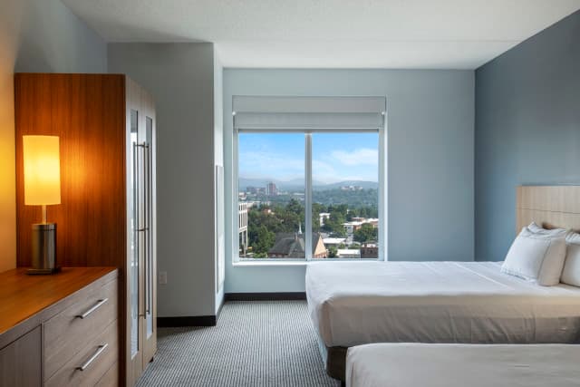 Located in downtown Asheville, the hotel features 140 guest rooms – including specialty corner-view rooms and five suites and high-floor mountain and city views. All guest rooms offer mini-refrigerators, L-shaped full-bed pull-out sofas and premium bathroom amenities.