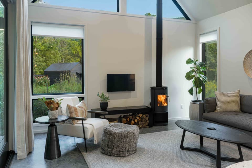 Escape to our tranquil cabins nestled along Shope Creek in the heart of the Blue Ridge Mountains of Western North Carolina. Our newly built modern cabins provide a peaceful oasis on 22 wooded acres for you to relax and unwind. We are located in East Asheville close to the Blue Ridge Parkway, Pisgah National Forest, and Warren Wilson College, and just 20 minutes to Downtown. Get the best of both worlds at Firelight thanks to a mix of vibrant city attractions and the natural beauty that makes Western North Carolina so famous. At Firelight you can take a stroll along our private hiking trails or lounge by the creek. Our raised garden beds and chicken coop provide fresh eggs, veggies, and herbs during your stay. Our small cabins sleep 2 guests and the larger home sleeps 4 guests and are perfectly suited for everything from romantic weekends to girlfriend getaways to small wellness retreats.