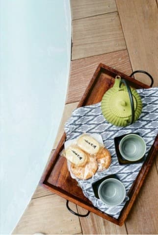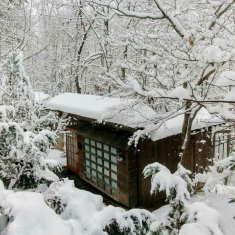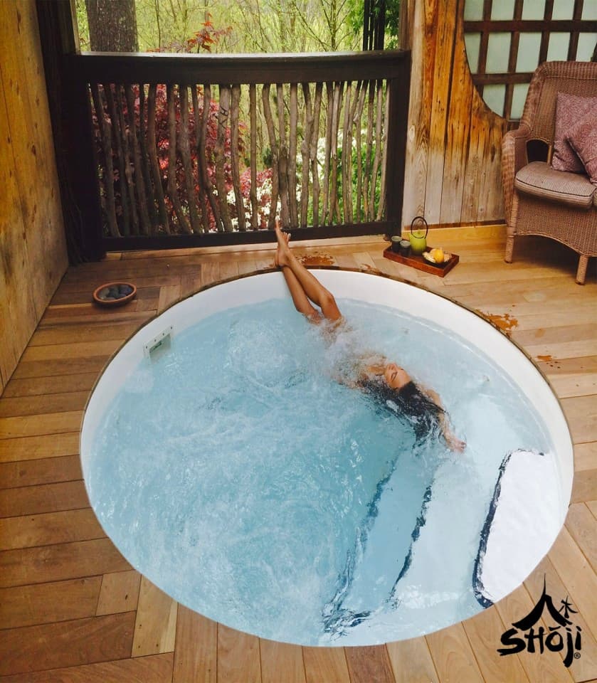 Soak in a private Japanese-style saltwater tub surrounded by the Blue Ridge Mountains. Unwind further with full access to our cedar sauna and cold shower.