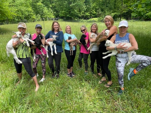 <p>Disconnect with stress and connect with loving, social baby goats! This is a unique opportunity to let the busyness of the world melt away for a moment. You can expect a beginner-friendly yoga class that is easy to follow…and rejoin if you find yourself distracted throughout.</p>