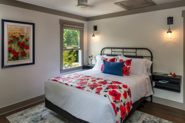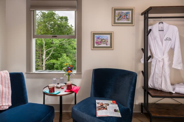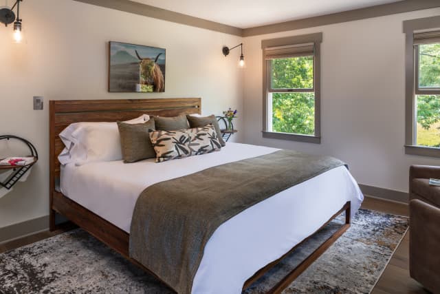 Step into tranquility, where you are met by our attentive staff, ready to whisk you up to one of our six meticulously designed rooms. Sink into the comfort of luxurious beds adorned with soft linens, ensuring a peaceful night's sleep after a day of adventure. Wake up to panoramic views of the Appalachian mountains and enjoy a warming cup of our house-blend coffee. Indulge in a delightful farm-to-table breakfast, where fresh, locally sourced ingredients take center stage, highlighting the flavors of the season.