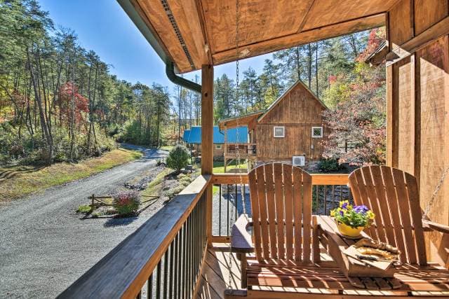 Five wonderful cabins on 17 wooded acres, these cabins feel like they are out in the country while located a short drive to all the modern conveniences and only 15 minutes to downtown Asheville. Each cabin is professionally decorated with Western North Carolina in mind. Each with its own personality. All with fully stocked kitchens, full size washer and dryers, porch swings. Four cabins have hot tubs! Relax and enjoy your cabin or take off for an adventure. Either way, your private hot tub, porch swing and communal fire pit are waiting for you to relax.